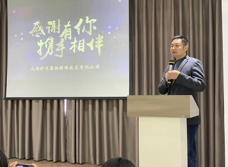 活动以宋总致辞拉开序幕,并以“感谢有你,携手相伴”为主题,谈到我们在2020年努力拼搏稳定创收,大力研发,还引进纽豹RFID倒封装生产线扩大生产以及收获多个奖项等成绩。并提出在2021年会继续加大技术投入,以及提高员工福利等新政策。
